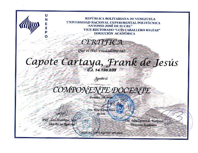 8) COMPONENTE DOCENTE (Empresa: UNEXPO): Manejo de las TIC, relaciones con estudiantes, programación de clases y otros temas de interés.