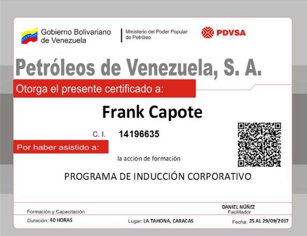 12) Programa de Inducción al Corporativo (Empresa: PDVSA): Conocimiento general de la industria petrolera, sus organizaciones internas, autores de cada una de las gerencias, visualización y entendimiento de la cadena de valor de la industria petrolera venezolana.