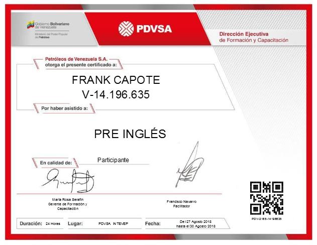 15) Pre-Ingles (Empresa: PDVSA Intevep): Refrescamiento de los tiempos verbales, gramática y armado de oraciones a partir del idioma español.